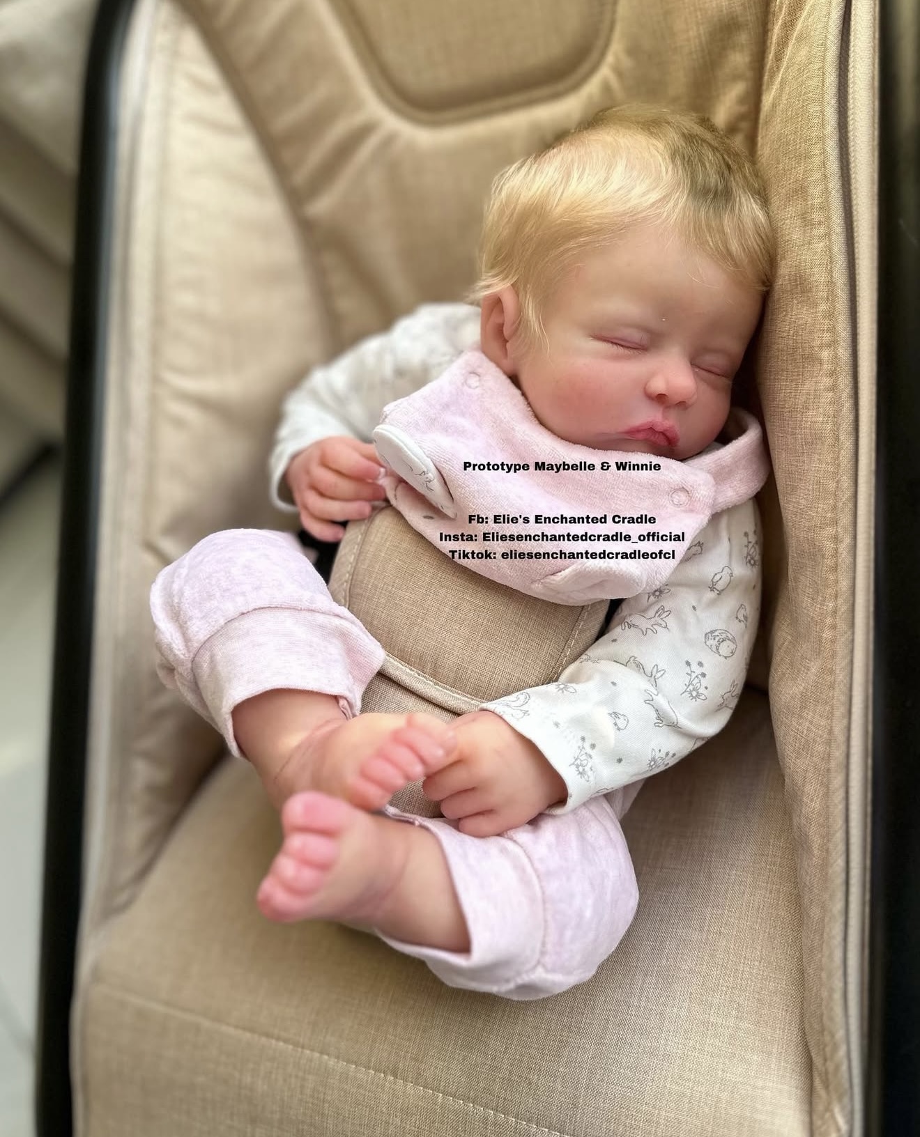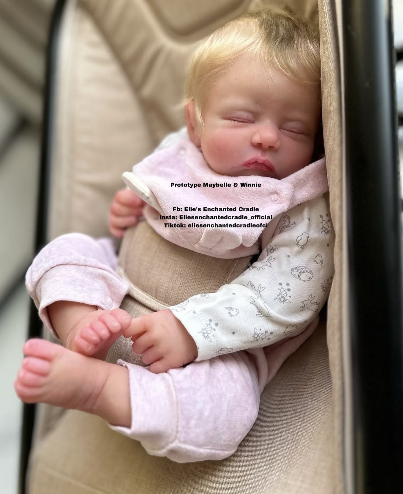 Baby Maybelle is a 19-inch cuddle baby silicone doll and wears newborn-size clothing. She is poured in a soft blend silicone and features an open mouth for a realistic appearance.