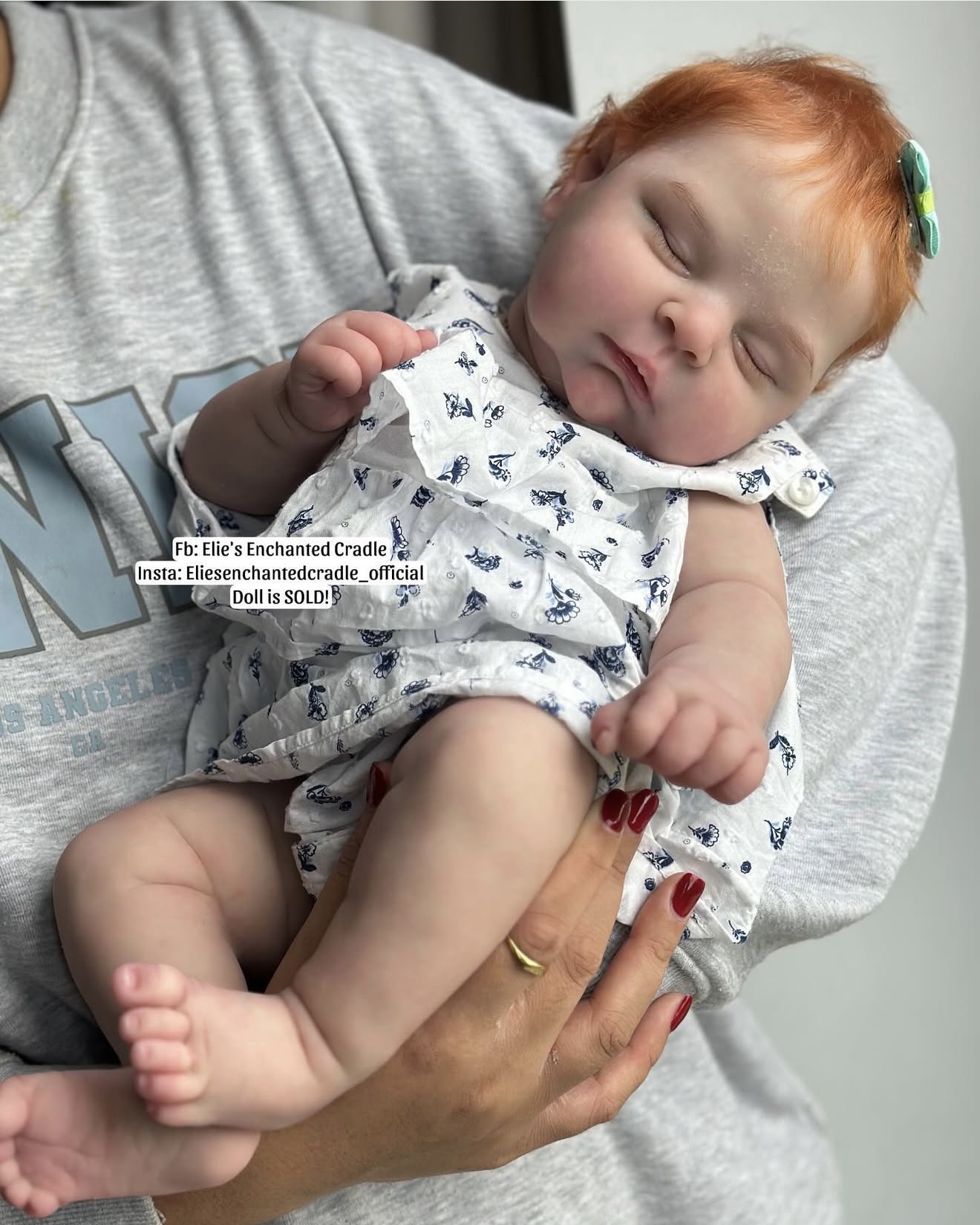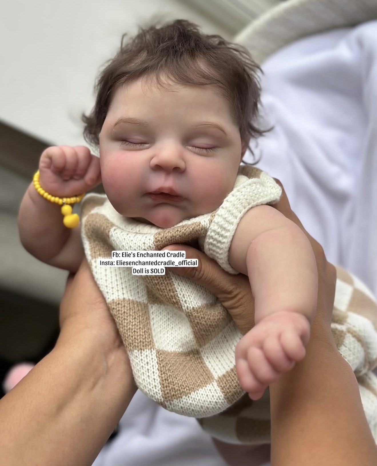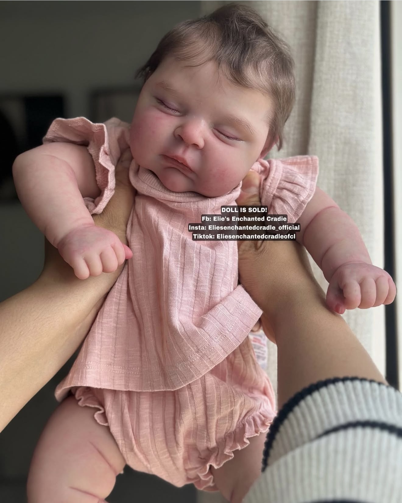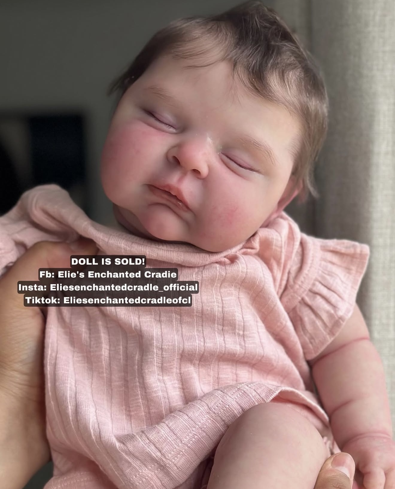 Baby Peaches is a 19-inch partial silicone doll and wears newborn-size clothing. She is poured in a soft blend silicone and features an open mouth for a realistic appearance. Peaches has full silicone arms, legs, and head, while the body is cloth, making her lightweight, flexible, and easy to pose and dress.